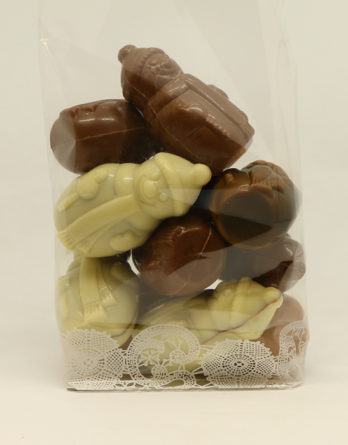 Les chocolats de NoëlBonhommes de Neige assortis chocolat blanc, lait, caramel fourrés praliné – Sachet 250g